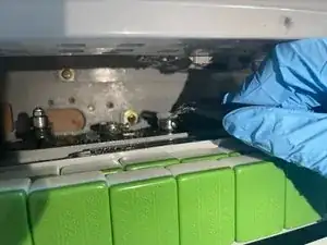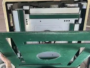 Снимите длинную (зелёную) крышку платформы застрявшей секции и отложите её, чтобы открыть отверстие платформы.