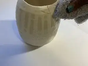 После высыхания вазы очистите участки, где отсутствуют куски керамики, с помощью ткани.