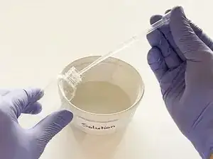Переложите раствор из миски в распылитель с помощью пипетки.
