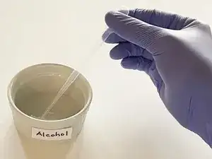 Перелейте и выдавите спирт из пипетки в отдельную миску.