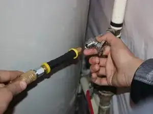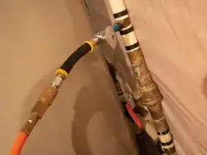 Подключите шланг к компрессору и другой к водопроводу (в подвале).