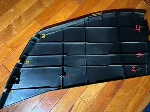 По переднему и верхнему краю панели, обозначенной красными цифрами на первом фото, необходимо вывернуть четыре шурупа с крестообразным шлицем №2.