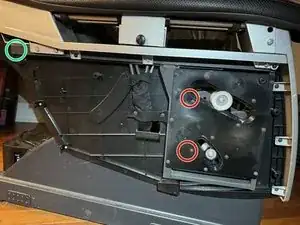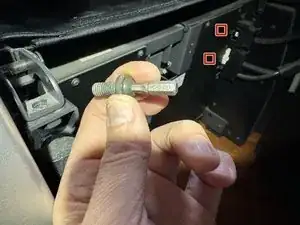 Вероятно, для доступа к зелёному болту потребуется разобрать серую пластиковую деталь под подлокотником.