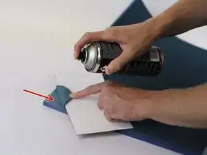 Положите маленький кусок картона между соплом и остальной частью коврика, чтобы предотвратить прямое загрязнение спрей-клеем.
