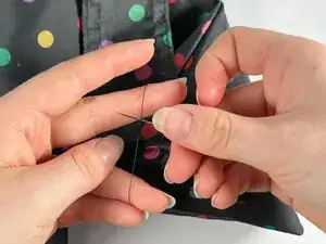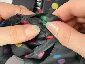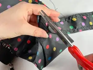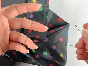 В этом руководстве мы сначала удалим сломанный ремешок зонта с помощью лопатки для распарывания швов, затем отметим оригинальные линии шитья с помощью тканевого мелка. Далее мы совместим и заколем ткань зонта с помощью швейных булавок, прошьем по отмеченным линиям, затем завяжем узел и обрежем лишние нитки с помощью ножниц. Этот ремонт также будет использовать определенный тип стежка, называемый обратным стежком, который включает в себя петлю нитки обратно на себя для обеспечения прочности и долговечности. Этот стежок также невероятно полезен и может использоваться для многих других типов швейных ремонтов.