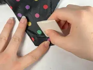 Потяните за оба конца ткани зонта, чтобы проверить прочность шва. Ремонт завершен!