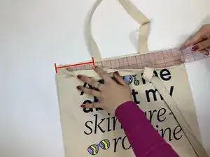 С той стороны, где ремешок сумки отсоединился, поставьте метку по вашему предыдущему измерению на внутренней стороне сумки.