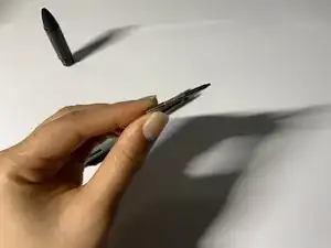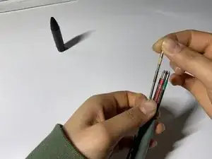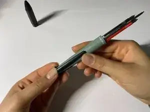 Поставьте крышку вертикально и отложите в сторону, чтобы она не скатилась. Приложив палец к зажиму карандаша, нажмите, пока пишущая часть не выдвинется.