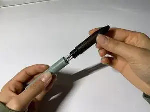 Удерживая основание серебристого цилиндра, снимите верхнюю часть пишущего узла.