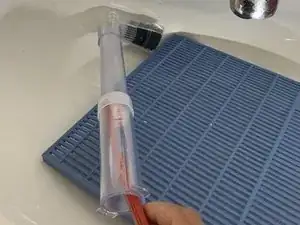Используйте щётку, чтобы удалить приставший мусор с трубки и основания фильтра.