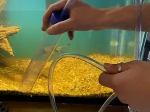 Вставьте погружной пылесос сверху в аквариум.