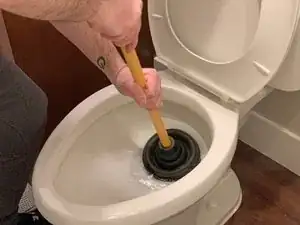 Этот приём заставляет воду в сливе толкать и тянуть в обоих направлениях, в конечном счёте разрыхляя застрявший материал и прочищая унитаз.