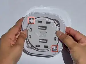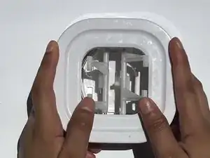 Переверните крышку так, чтобы кнопка оказалась сверху, затем снимите кнопку с основания крышки.