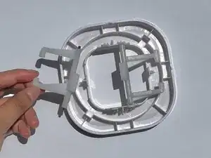 Приложив усилие, выньте два штыря из основания крышки, выломав их из крепления. Будьте осторожны, чтобы не сломать мелкие выступы крепления.