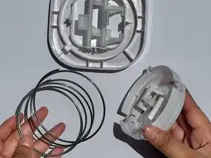 После того как штыри будут разведены, пружина и круглая крышка пружины легко отделятся от квадратной рамы.