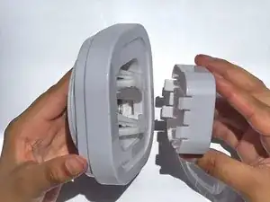 Чтобы собрать крышку, начните с соединения внешней детали с основной. Пазы на деталях позволяют соединить их только одним правильным способом.