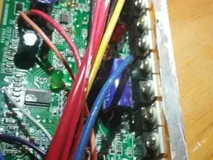 Удалите винты, ослабьте белый пластиковый винт, сдвиньте крышку корпуса по проводам, чтобы открыть и вынуть контроллер. Ищите признаки попадания воды или перегрева. На фото 3 обратите внимание на красный провод и рядом на плате — два куска, похожие на оголённые провода. Это перемычки, их можно немного припаять на концах, чтобы увеличить выходную мощность. НЕ паяйте полностью!