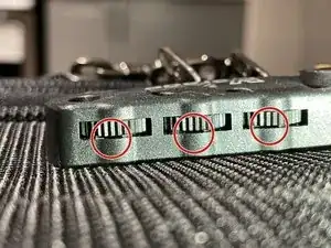 Поверните три шестерни вместе так, чтобы рифленая часть каждой шестерни была обращена наружу.