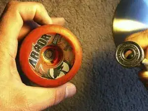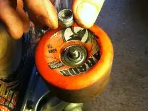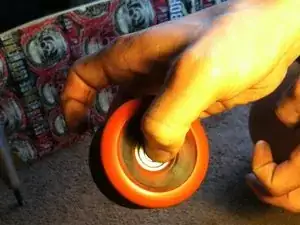 Приложите подшипник к колесу, равномерно нажав на него большим пальцем.