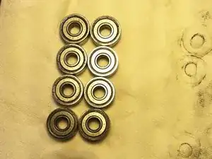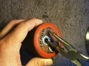 Используйте плоскогубцы с узким носом, чтобы достать подшипники с обеих сторон каждого колеса.
