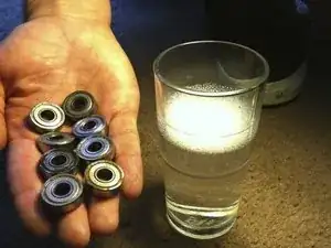 Поместите подшипники в мыльную воду и дайте им замочиться в течение 5 минут.