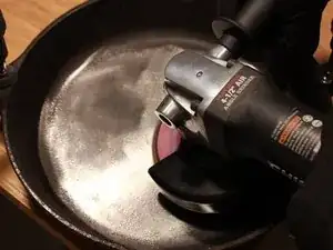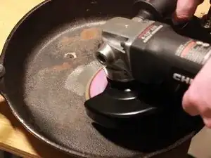 Отшлифуйте всю поверхность сковороды, чтобы устранить оставшиеся неровности.