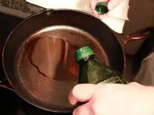 Нанесите равномерный слой жаростойкого масла на все части сковороды.