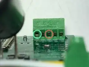Синий и зелёный провода должны оказаться с внешней стороны платы.