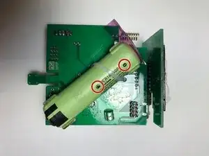 Поместите небольшой кусочек пластика от фильтра на отрицательной стороне держателя аккумулятора.