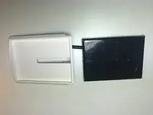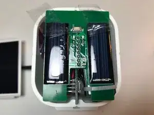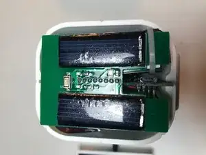 Поместите небольшой кусочек пластика от фильтра на отрицательную сторону держателя батареи. Отрицательная сторона помечена знаком (-) и находится со стороны, обращённой к солнечным панелям.