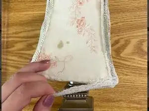 Накиньте одну деталь ткани на сторону лампы, лицевой стороной наружу и по центру.