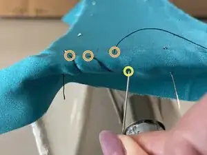 Иногда трудно протолкнуть иглу через подкладку и новую внешнюю ткань одновременно — используйте напёрсток, чтобы защитить пальцы, если иглу сложно толкать.