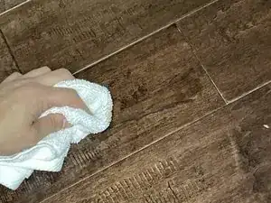 Используя средство для очистки деревянных полов и чистую ткань, протрите участок, чтобы удалить грязь и мусор.