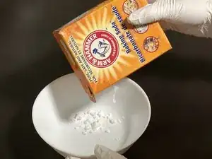 Насыпьте около 3-4 столовых ложек соды в миску.