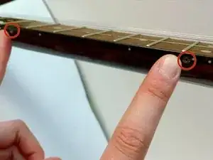 Следите за тем, чтобы отверстия под винты не попали прямо под порожек лада или прямо на промежуточную метку ладов.