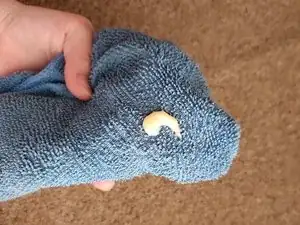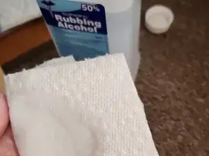 Нанесите небольшое количество 50% изопропилового спирта на бумажное полотенце или ткань.