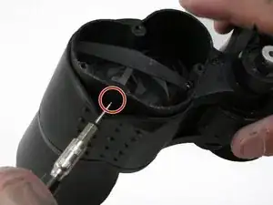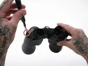 Открутите центральный винт J0 в центре бинокля, используя отвёртку с битой 4 мм и наконечником J0.