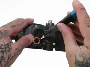 Снимите верхнюю деталь и шайбы, расположенные под средним винтом.