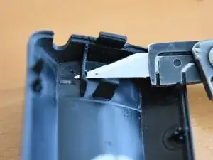 Держатель батарейки должен поместиться в отсеке для батареи, поэтому удалите часть рёбер, отлитых в пластике для удержания батареи и крышки отсека.