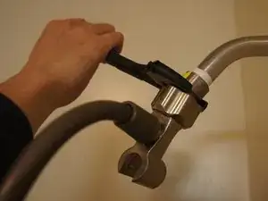 Наденьте гаечный ключ на крепление душевой лейки. Отрегулируйте ключ так, чтобы он плотно сидел на креплении.