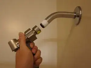 Это руководство предназначено для уплотнения соединения между душевой лейкой и трубой. Если лейка протекает в другом месте, кроме соединения, пожалуйста, найдите другие инструкции по устранению протечки в душевой лейке.