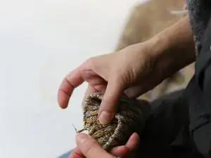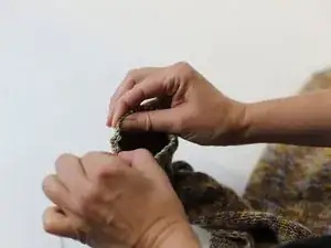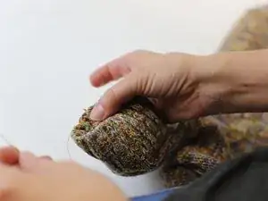 Следуя шагам, показанным на фотографиях, добавьте последние стежки, чтобы завершить ремонт.