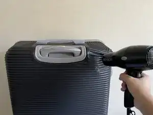Перемещайте фен вокруг вмятой области, чтобы избежать теплового повреждения чемодана. Наденьте термостойкие перчатки и проверяйте область периодически, чтобы убедиться, что она не перегревается.
