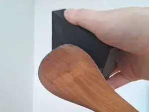 Сгладьте ваши изношенные деревянные кухонные принадлежности с помощью наждачной бумаги.