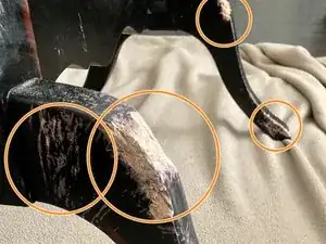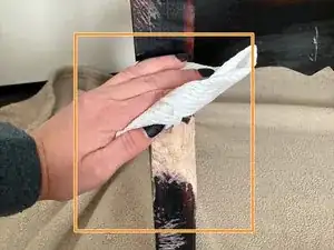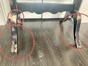 Отшлифуйте и очистите деревянные ножки, подлежащие ремонту.
