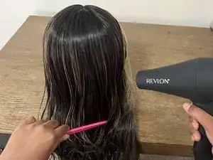 Если нужно использовать парик сразу, сушите феном на среднем или низком нагреве.