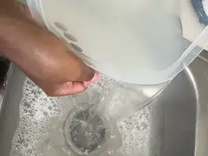 Вылейте использованную воду из ёмкости и заполните её свежей тёплой или горячей водой.