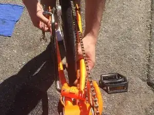 Убедитесь, что колесо ровно относительно рамы велосипеда и что цепь умеренно натянута.