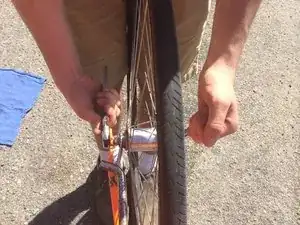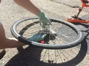 Установите колесо обратно на велосипед.