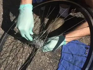 Перед тем как продолжать, прокрутите колесо и покрутите педали, чтобы убедиться, что всё вращается плавно. Если нет, проверьте, не слишком ли затянуты гайки оси.